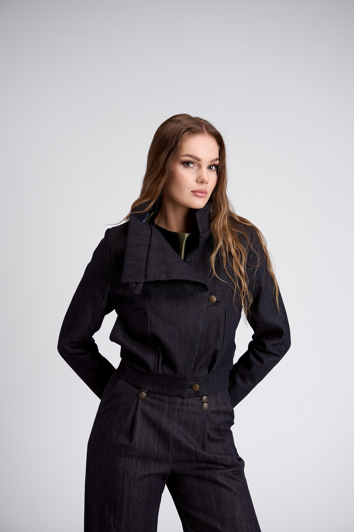 –Recomandare: Dacă doriți să creați un outfit complet din denim, vă sugerăm să comandați toate articolele odată. Pot exista ușoare diferențe de nuanță între loturile de material.