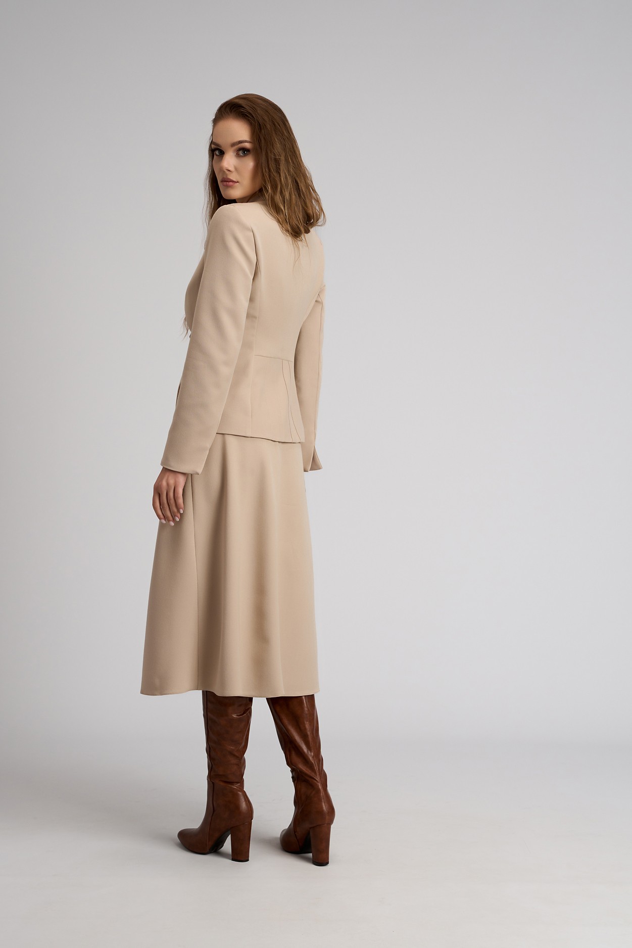 Sacou cambrat bej din stofa eleganta Kira